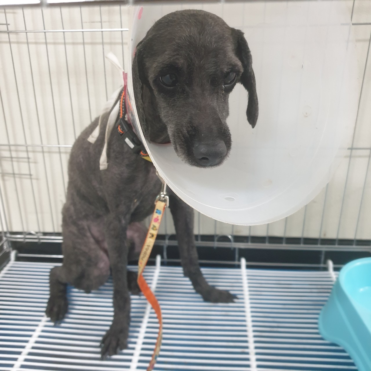 발견된 당시 체중은 4.9kg 으로 강아지의 성별은 남아입니다.