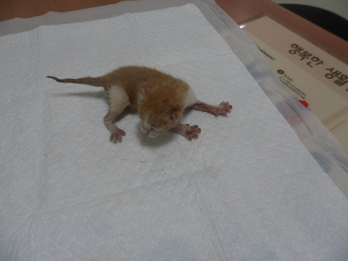 발견된 당시 무게는 0.2kg 이며 고양이의 성별은 남아입니다.