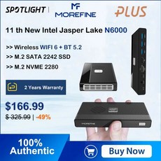 미니피씨 미니컴퓨터 미니PC MOREFINE-M6 미니 PC 11 세대 인텔 N10 2.9GHz 윈도우 DDR 4 2933MHz NVMe SSD 포켓 컴퓨터 HDMI 2.0 4K, CHINA, N6000 + AU, 8GB DDR4 1TB NVMe