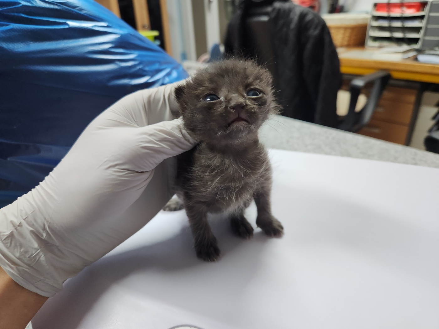 보호될 당시 무게는 0.2kg 이며 고양이의 성별은 남아입니다.