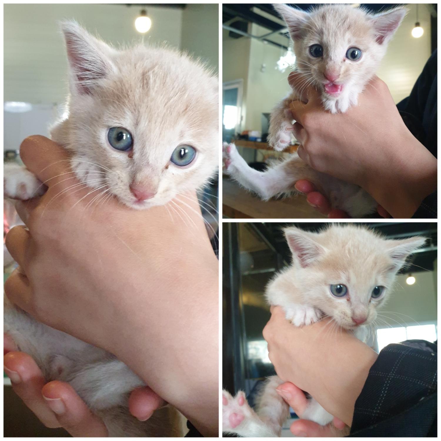 발견 당시 몸무게는 0.6kg 이며 고양이의 성별은 여아입니다.