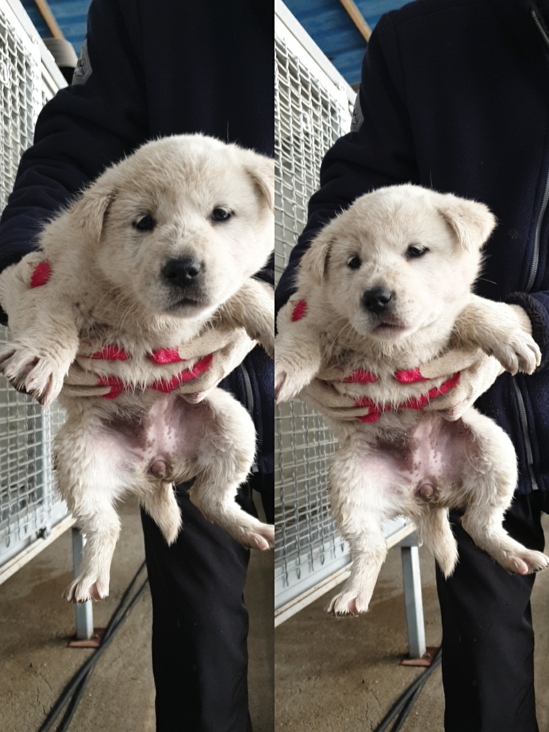 보호될 당시 몸무게는 3kg 이며 강아지의 성별은 여아입니다.