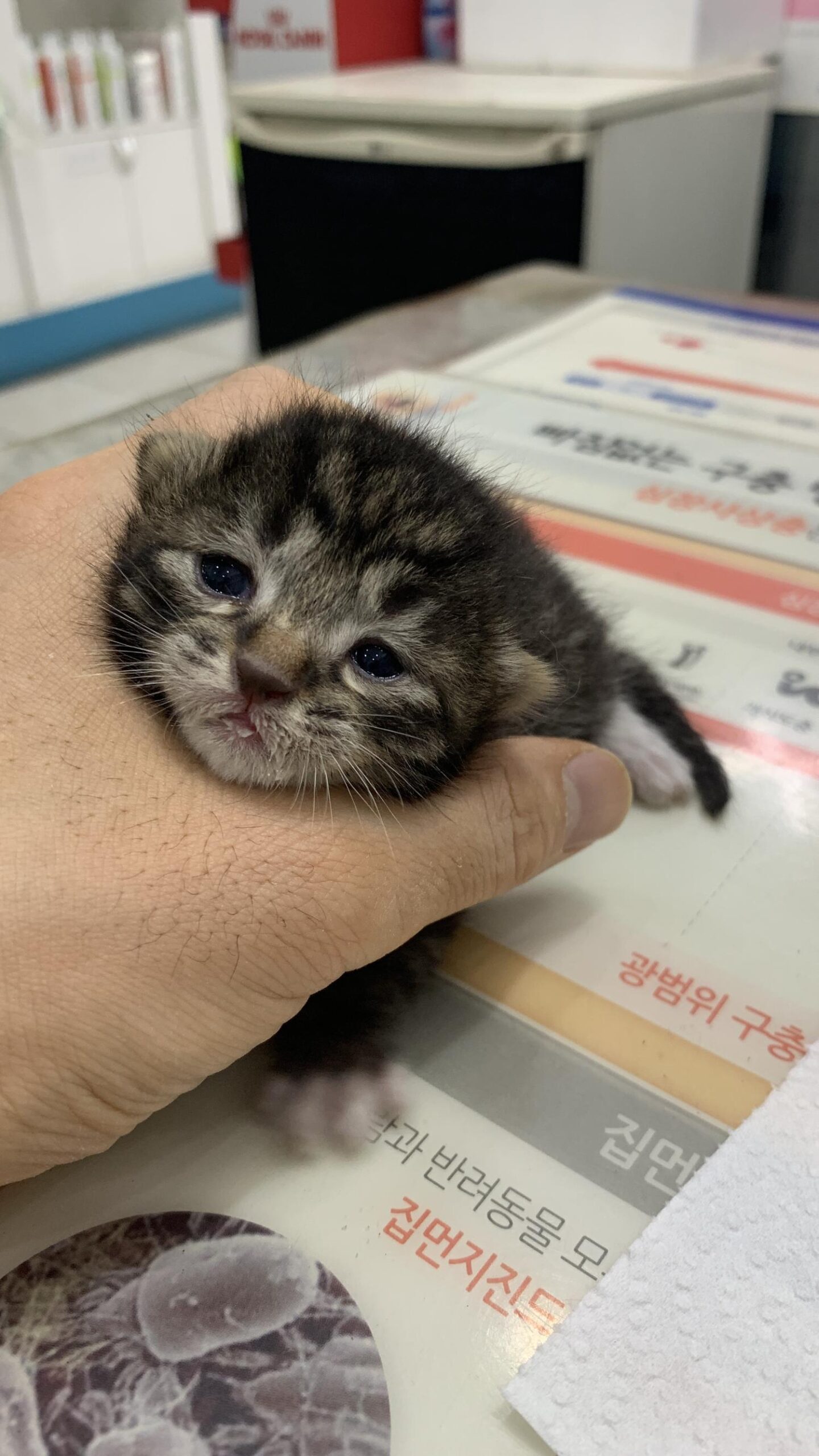 보호될 당시 체중은 0.05kg 이며 고양이의 성별은 남아입니다.