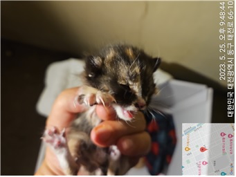 발견 당시 무게는 0.15kg 이며 고양이의 성별은 여아입니다.