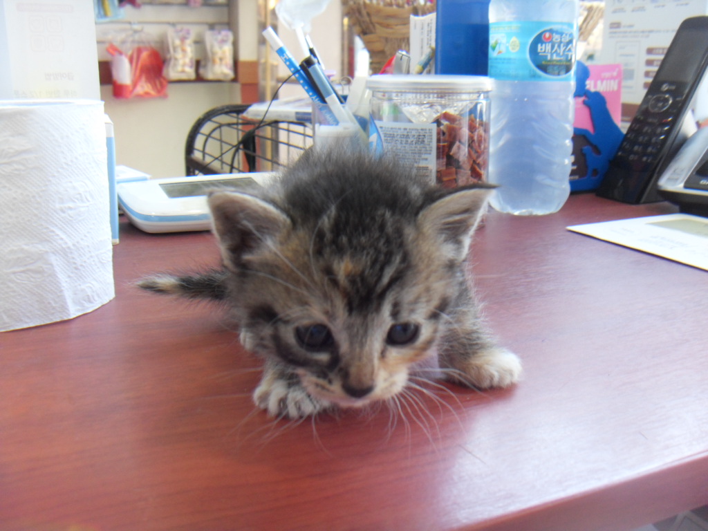 발견할 당시 체중은 0.3kg 이며 고양이의 성별은 여아입니다.