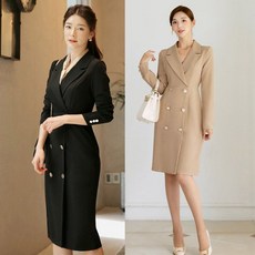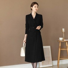 시크라인 숄카라 더블버튼 벨트셋트 A라인 코트형 원피스
