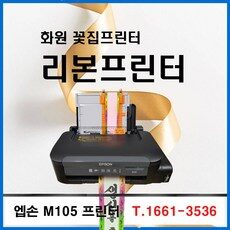 엡손 꽃집프린터 M105 풀패키지 리본출력 흑백 잉크 프린터, M105+USB리본메이커+가이드+리본거치대
