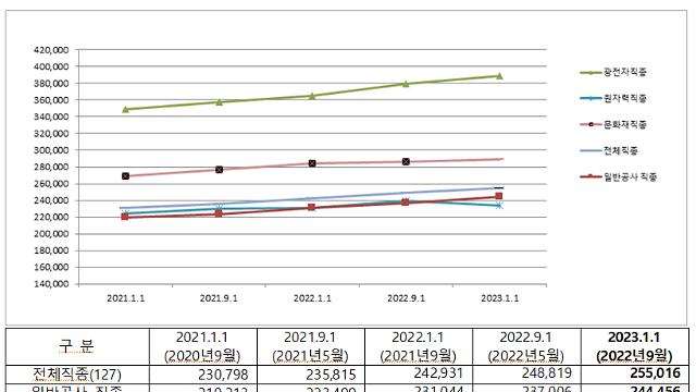 [표=건설업 종사자 평균임금 현황] 올 상반기 건설원가 산출에 적용되는 건설종사자들의 일평