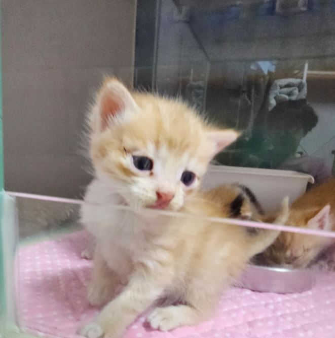 보호될 당시 무게는 0.3kg 이며 고양이의 성별은 남아입니다.