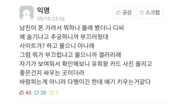 남친이 폰 가려서 왜 숨기냐고 추궁한 에타인.ssul 😆