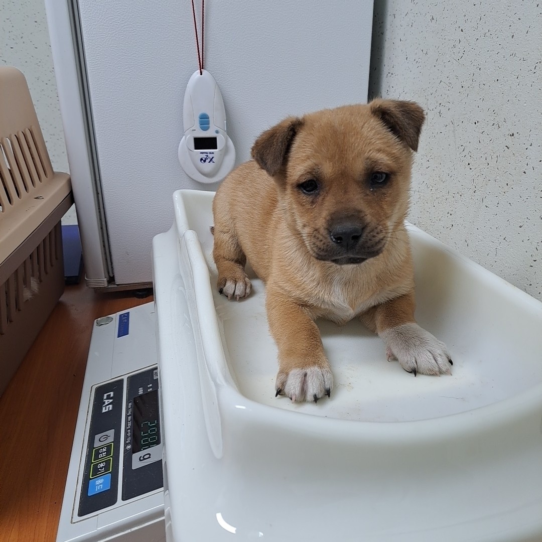 발견할 당시 무게는 2.9kg 이며 강아지의 성별은 남아입니다.