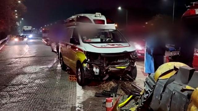 ⓒJTBC 갈무리 병원으로 향하던 구급차가 충격 흡수대를 들이받아 그 안에 타고 있던 임신