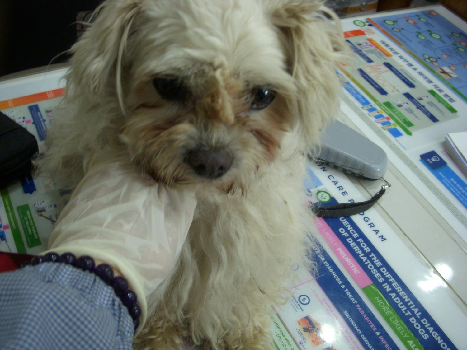 특이사항: 노령견,피부병,치석많고 치아이상, 보호중