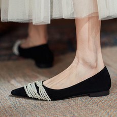 여성용 펄 라인 슬림 웨딩 플랫 구두