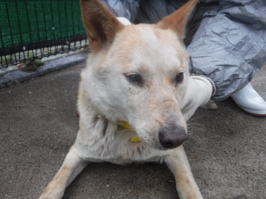 보호될 당시 체중은 14kg 이며 강아지의 성별은 여아입니다.