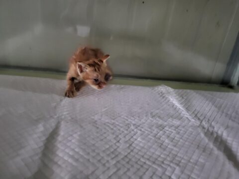 발견된 당시 몸무게는 0.4kg 이며 고양이의 성별은 여아입니다.