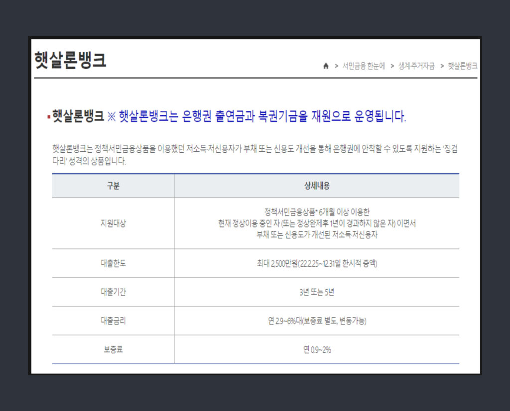 (2) 서민금융진흥원 및 햇살론뱅크 조건