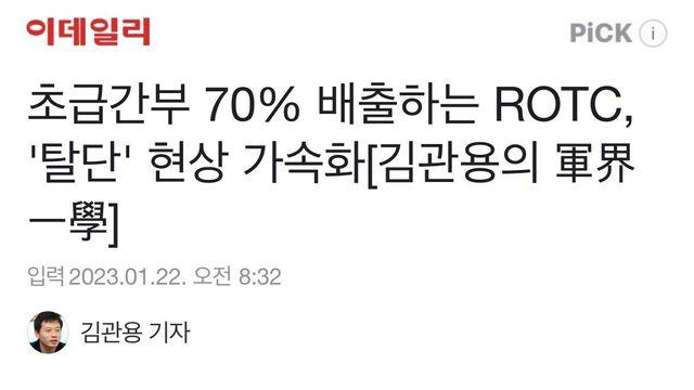 초급간부 70% 배출하는 ROTC, ‘탈단‘ 현상 가속화.