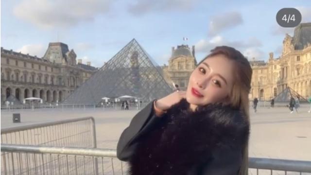 대만의 한 인플루언서가 파리 루브르 박물관에 ‘유리피라미드’앞에서 속옷만 입고 사진촬영을