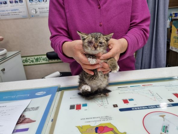 발견된 당시 무게는 0.4kg 이며 고양이의 성별은 여아입니다.