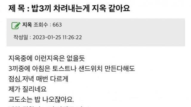 하루 3끼 차리는게 지옥이라는 아줌마 ?
