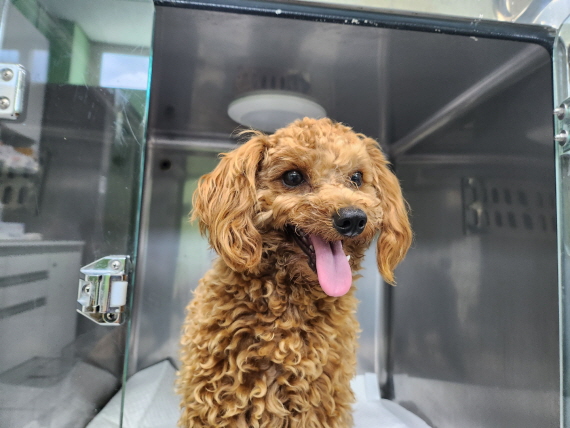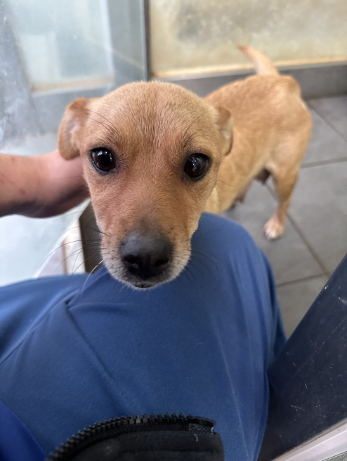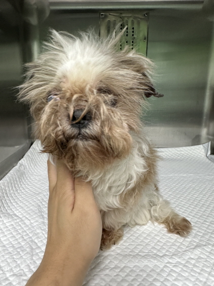 발견된 당시 체중은 8kg 이며 강아지의